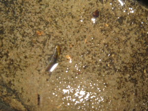 種類:Alopias sp. (オナガザメの絶滅種) 採集日:2007年3月28日 採集層:備北層群 地質時代:中新世 (Miocene 約2,300万年前~約500万年前) 岩質:泥岩 標本番号:MN-01