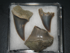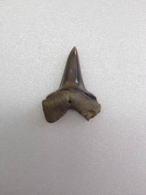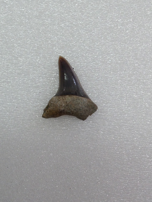 種類:Isurus sp. 採集日:2015年10月31日 採集層:一志層 地質時代:中新世 (Miocene 約2,300万年前~約500万年前) 岩質:貝化石密集層 標本番号:MN-20 レア度:★★★☆☆