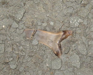 種類:Isurus desori 採集日:2010年3月31日 採集層:備北層 地質時代:中新世 (Miocene 約2,300万年前~約500万年前) 岩質:泥岩 標本番号:MN-16 レア度:★★☆☆☆